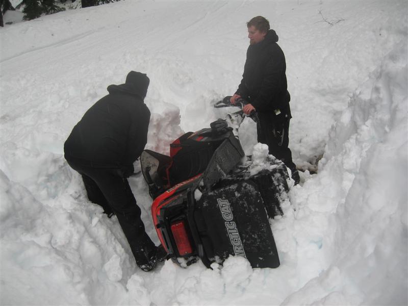 I have been in that situation many of times in WYO... The creeks are dangerous cuz' you'll just fall through to the water... WE used to call my sled "the pig" and belive me, getting a 600lbs machine out is a biaaatch...