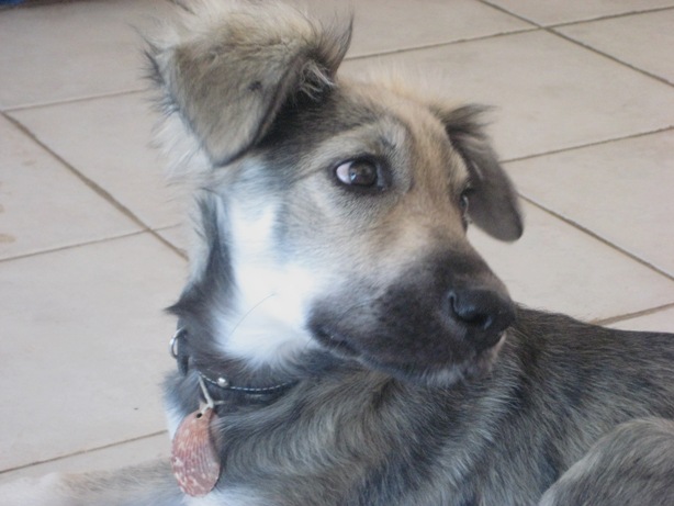 Stop by the white house with flags on it just down the beach from Baja Joes to meet our playful puppy.