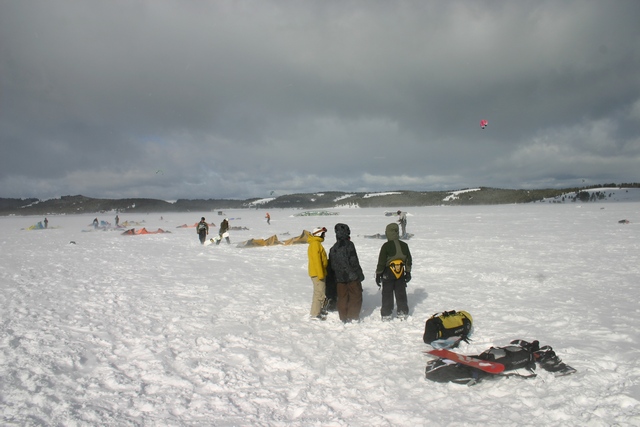 Demo's went killer on Saturday, with high wind ranging 18-25 and about 3-4 inches of freshiz on the lake! It felt like butter out there! Buzz was on the 7M-9M Revs that day and riders were stoked! I could here them yelling Yahoooo...! this Rev is the sickest snowkite ever...!