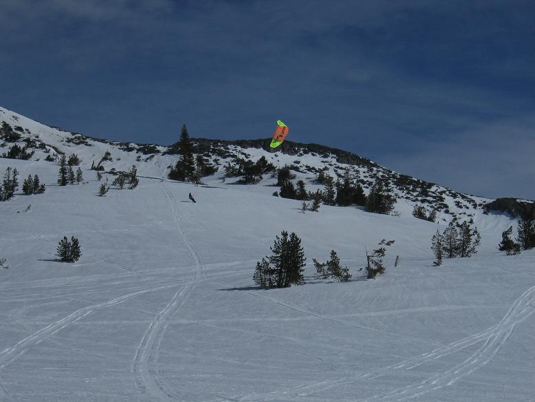 flats, rolling hills, cliffs, you name it the ski bowl has it. Some of the best riding i've had all winter. We attemped to summit, but the winds we're coming from the west a lil to much (south is ideal) and made a big wind shadow @ around 9000ft, there is a big rocky ridgeline that acts as a wind wall. i could see the "red dot" was just outta reach no matter how much we tried.