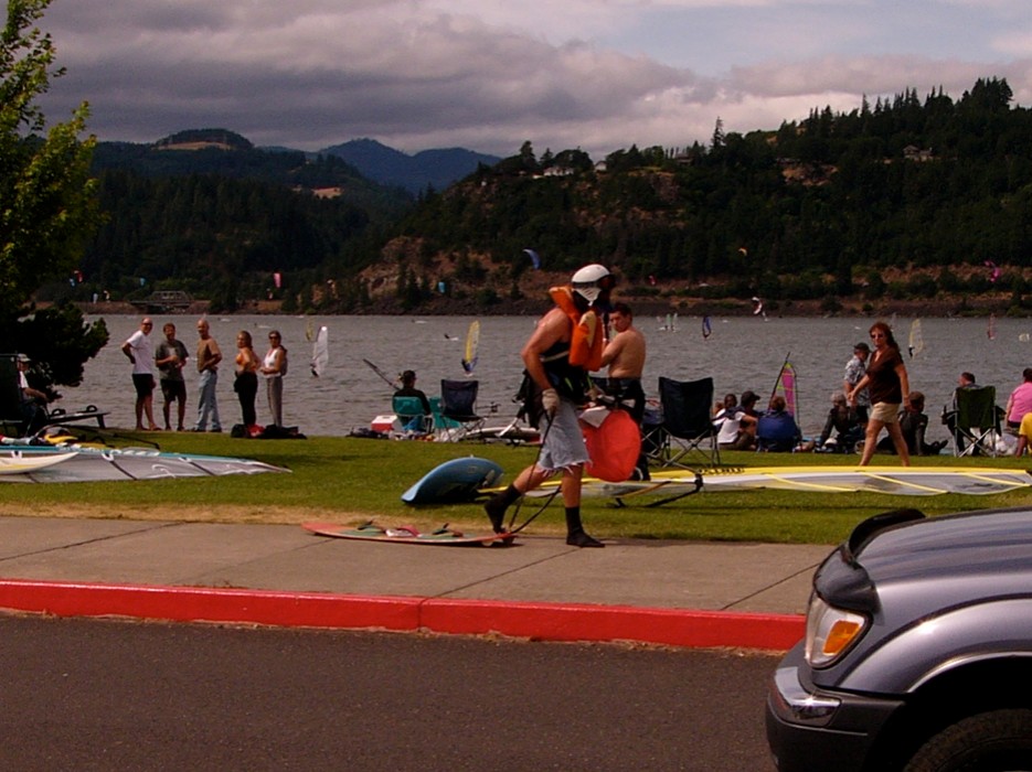 | Quote: | | --Kiteboarding (1996): the sport of riding on a small surfboard propelled across water by a large kite, to which the rider is harnessed. |
