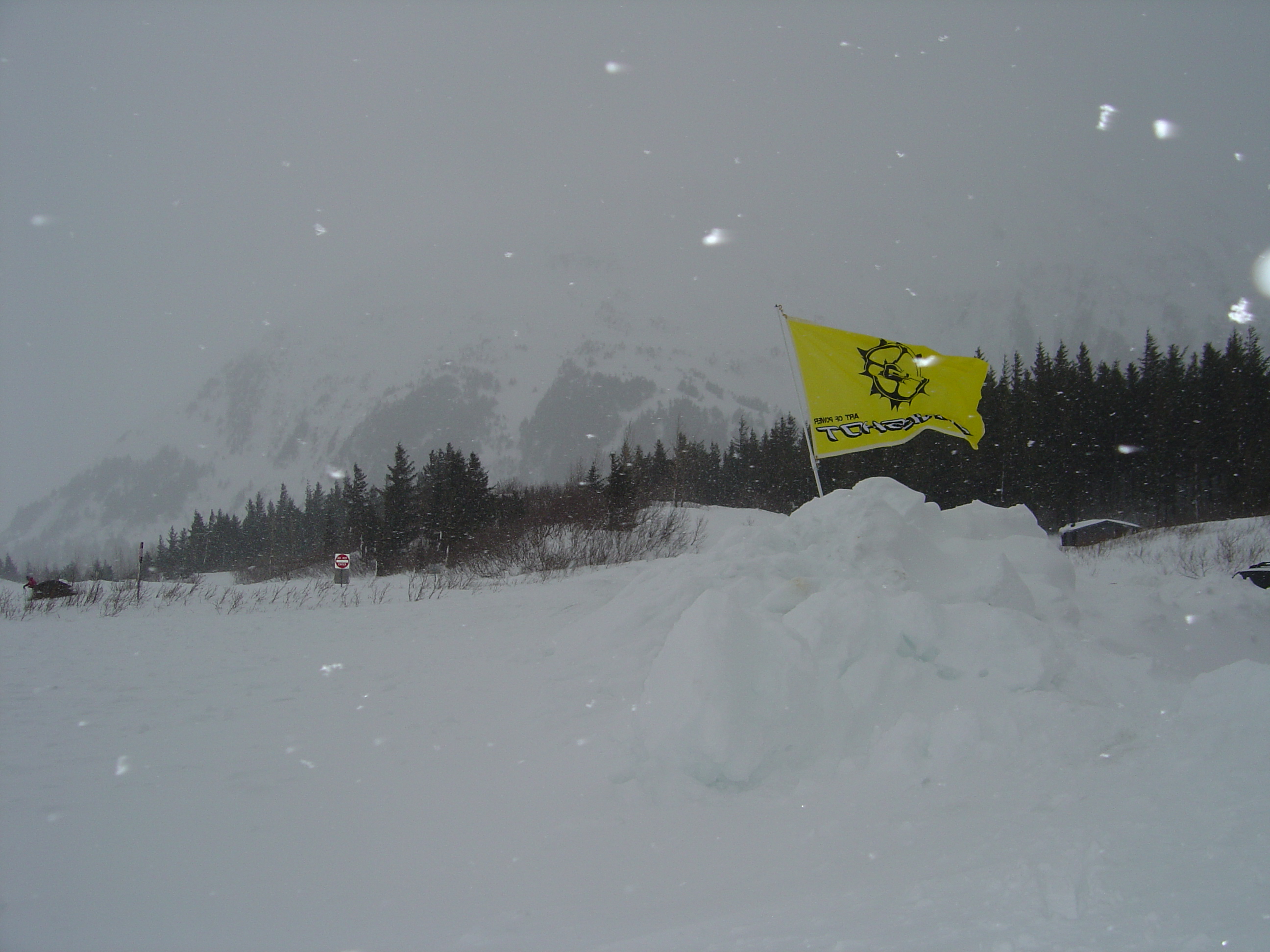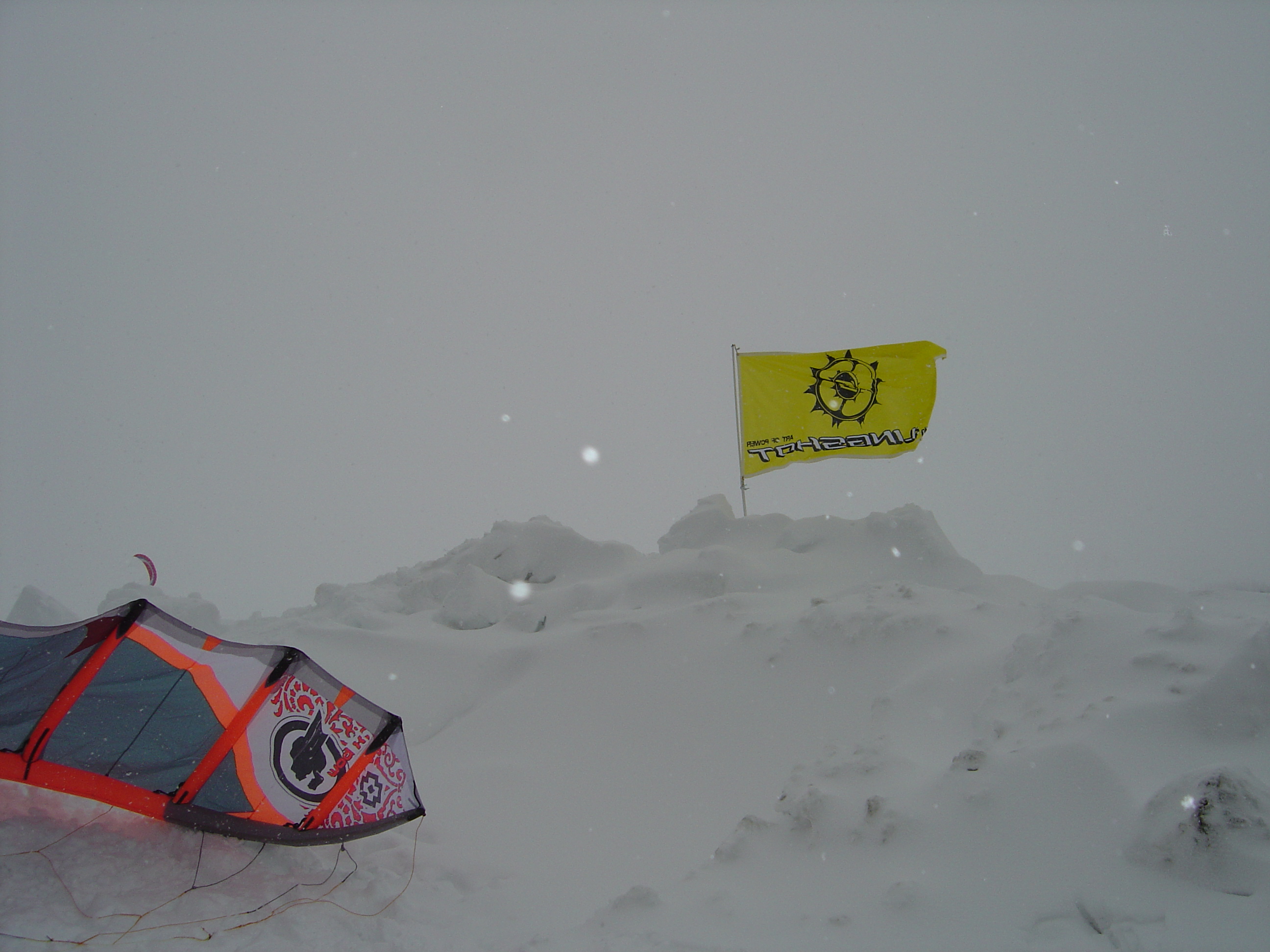 I wrote and asked them where I might buy a Slingshot flag to proudly fly over these northern parts in Alaska. I think it was Shymac who sent me one gratis, along with a pair of slingshot gloves that by chance matched my snow kiting suit.